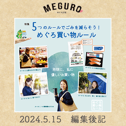 めぐろ区報令和6年5月15日号編集後記「地球に私に優しいお買い物!めぐろ買い物ルール」(令和6年5月15日公開)