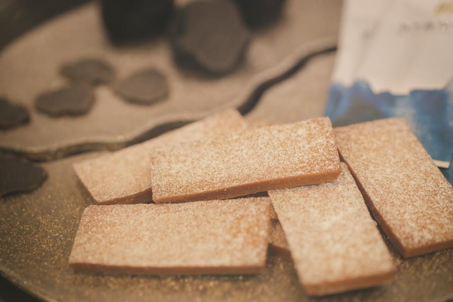 「家系的にモノづくりが大好きなんでしょうね。「六瓢息災」も焼いて切ったら終わりと思われがちですが、1年間蜜漬けにしたしょうがに、生クリームやバターを入れて練り込んだ具材をタルト生地に仕込み、寝かせて焼き、さらに寝かせるという工程を重ねています。そのため、最低でもお作りするのに3日はかかります。さらに工場ではあえて機械化せず、ほぼすべてが手作業のため、たくさんのご注文をいただいても倍の量を作ることはできないのです。」