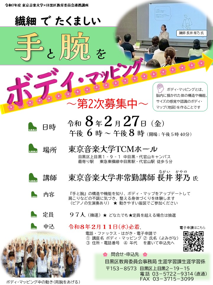 第2次募集 東京音楽大学×目黒区教育委員会連携講座ー繊細でたくましい「手と腕」をボディ・マッピング